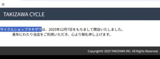 タキザワサイクルが閉店した