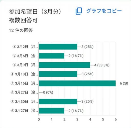 三月のカトーサイクルローラー教室の現在の予約人数です