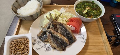 アジを焼いた